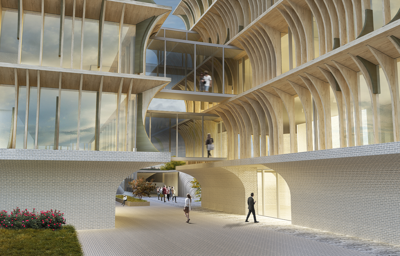 Short and effective circulations have been developed between the service buildings, which are horizontal and vertical.