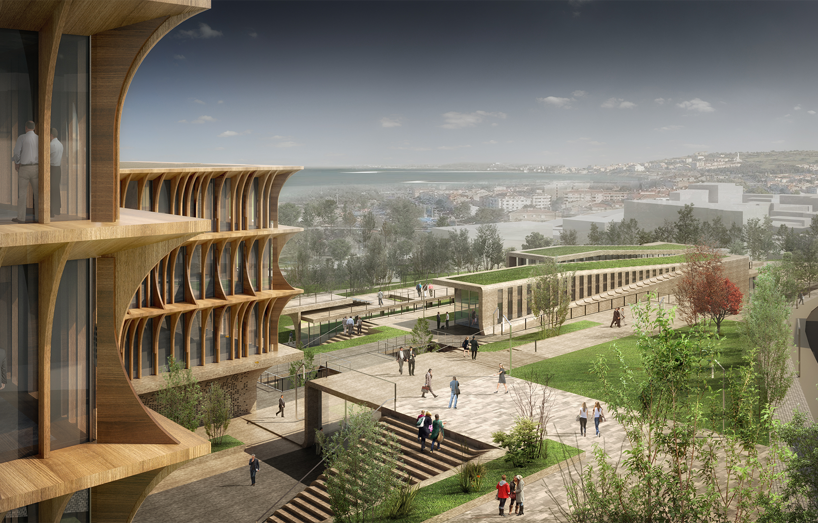 In line with the facilities offered by the topography, the municipal service buildings with two terraces over the terraced urban covering, which make up the main design backbone, both contain intensive function themes.